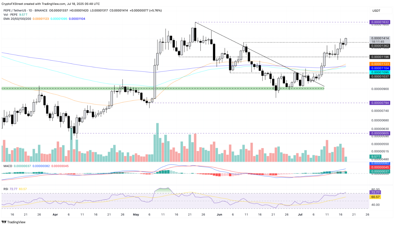 Biểu đồ PEPE/USDT hàng ngày | Nguồn: TradingView