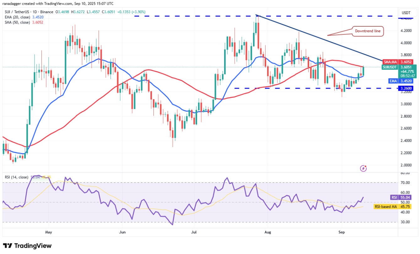 Sui (SUI) đã quay đầu từ đường SMA 50 ngày (3,60 USD) vào ngày thứ Ba. Tuy nhiên, một tín hiệu tích cực là phe bò không để giá trượt xuống dưới đường EMA 20 ngày (3,45 USD).