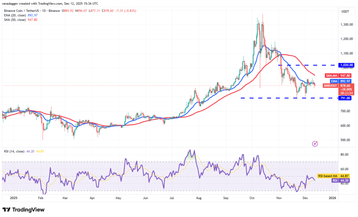 BNB đã giao dịch quanh đường EMA 20 ngày tại 892 USD trong vài ngày qua, cho thấy trạng thái cân bằng giữa người mua và người bán.