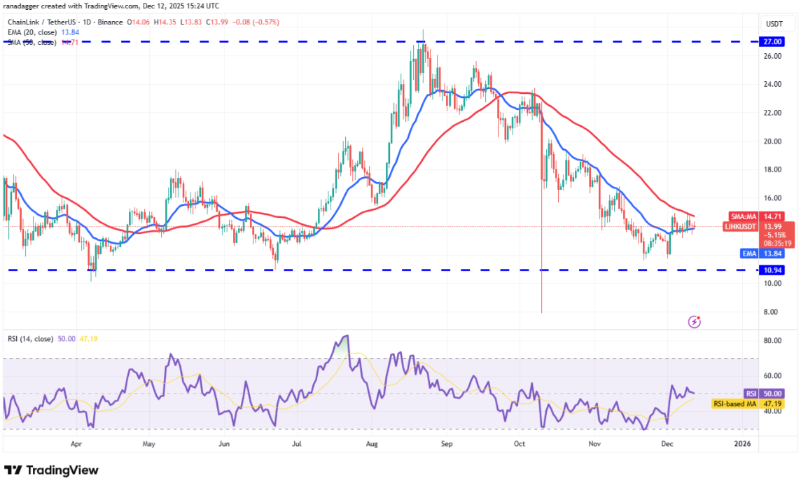 Chainlink (LINK) hiện giao dịch quanh mức 13,64 USD và đã dao động giữa các đường trung bình động trong vài ngày qua, phản ánh sự cân bằng giữa cung và cầu.