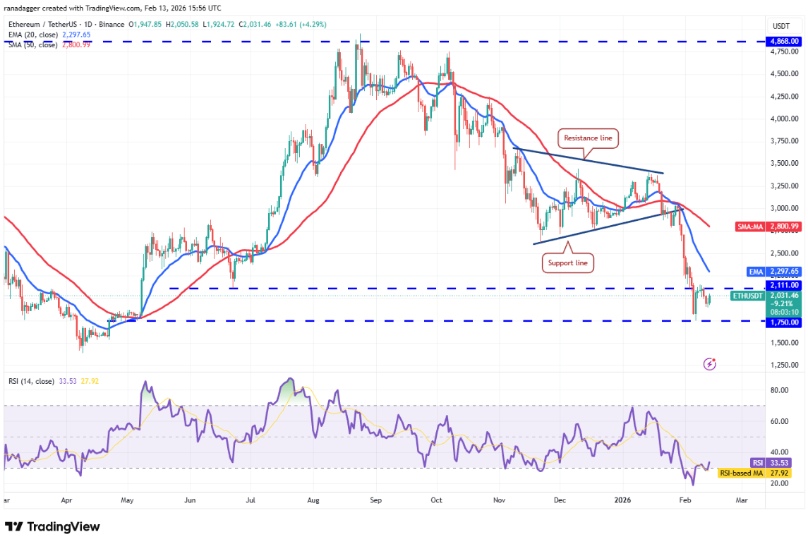 Ở chiều tăng, phe bò cần nhanh chóng đẩy giá vượt lên trên đường EMA 20 ngày (2.297 USD) để phát tín hiệu phục hồi. Nếu làm được, cặp tiền có thể tăng lên SMA 50 ngày tại 2.800 USD.