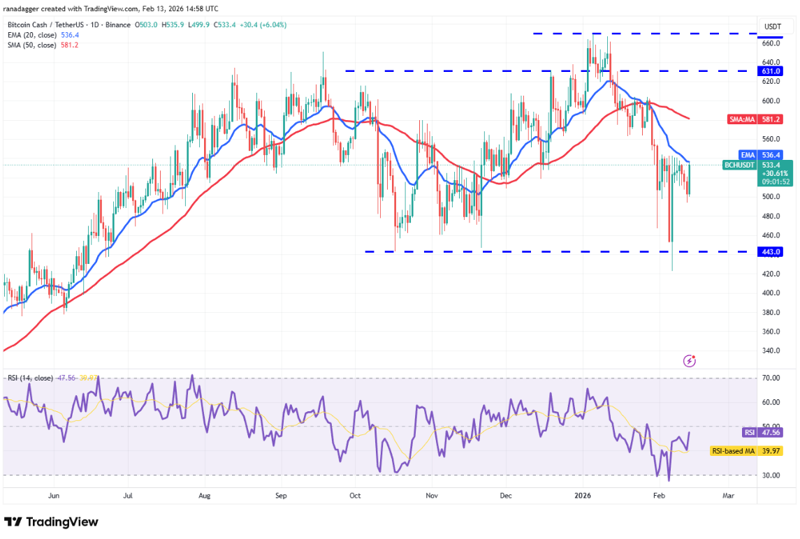 Phe bò đang cố gắng đẩy giá vượt lên trên đường EMA 20 ngày ($536) nhưng được dự đoán sẽ gặp phải lực kháng cự đáng kể từ phe gấu. Nếu giá quay đầu giảm từ đường EMA 20 ngày và phá vỡ xuống dưới $493, cặp BCH/USDT có thể lao dốc về vùng $443.