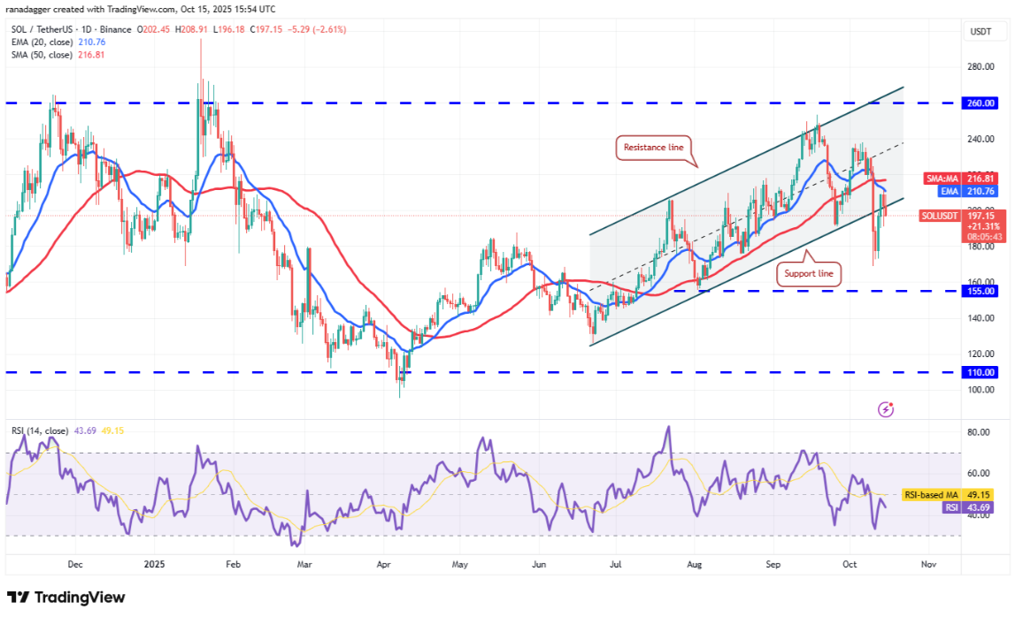 Solana (SOL) đã quay trở lại mô hình kênh giảm vào thứ Hai, nhưng đà hồi phục bị chặn tại đường EMA 20 ngày (210 USD) vào thứ Ba.
