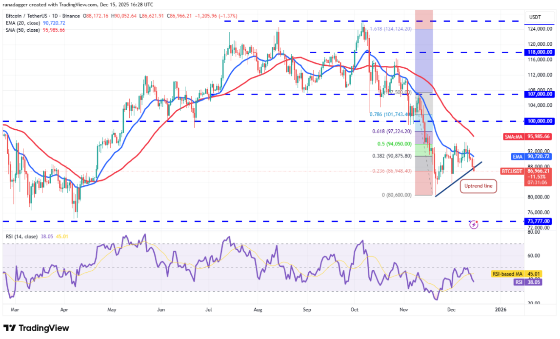 Trong bối cảnh đó, câu hỏi đặt ra là liệu Bitcoin và các altcoin vốn hóa lớn có thể khởi động một nhịp hồi phục ngắn hạn, hay phe gấu sẽ tiếp tục kiểm soát thị trường và kéo giá xuống thấp hơn. Hãy cùng phân tích diễn biến kỹ thuật của 10 tiền điện tử hàng đầu để tìm lời giải cho kịch bản sắp tới.