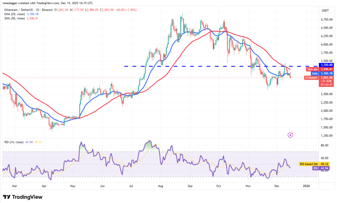 Phe bò đã đẩy Ether (ETH) vượt lên trên đường EMA 20 ngày tại 3.106 USD vào thứ Hai, nhưng bóng nến dài cho thấy áp lực bán xuất hiện ở các mức giá cao hơn.