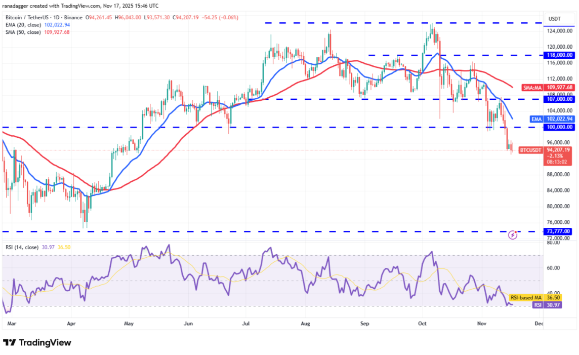 Thời gian đang dần cạn cho phe bò. Họ cần nhanh chóng đưa giá Bitcoin trở lại trên đường EMA 20 ngày (102.022 USD) để làm suy yếu động lượng giảm. Khi đó, cặp BTC/USDT có thể tiến lên đường SMA 50 ngày (109.927 USD).