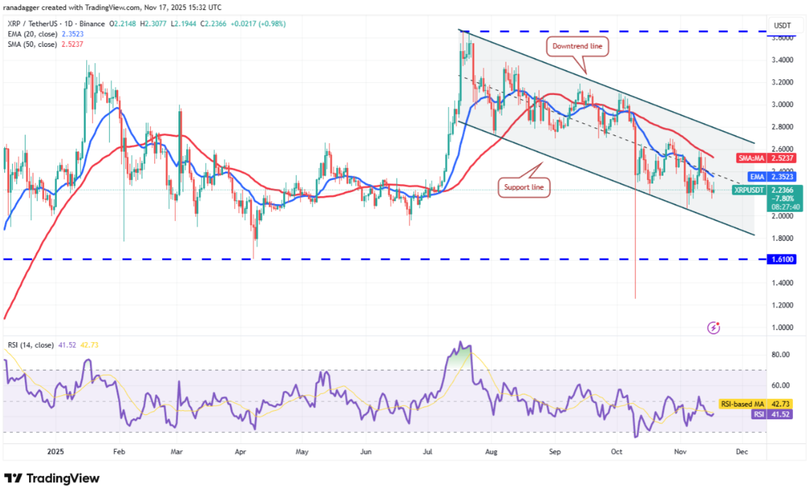 Hỗ trợ gần nhất nằm tại 2,15 USD. Nếu vùng này bị xuyên thủng, cặp XRP/USDT có thể rơi về đường hỗ trợ của kênh. Phe bò dự kiến sẽ phòng thủ mạnh tại đây vì nếu hỗ trợ bị phá, giá có thể giảm sâu về 1,61 USD.