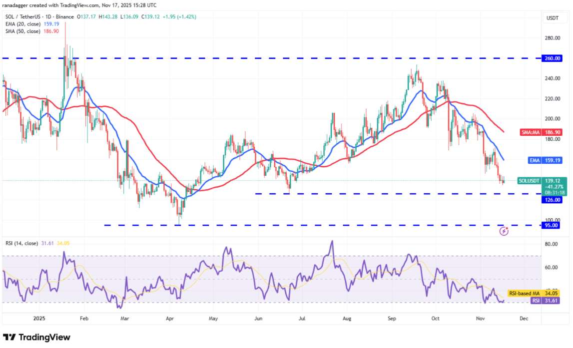 Bất kỳ nỗ lực phục hồi nào nhiều khả năng cũng sẽ đối mặt với áp lực bán tại đường EMA 20 ngày (159 USD). Nếu giá đảo chiều mạnh từ đường EMA 20 ngày, rủi ro phá vỡ ngưỡng 126 USD sẽ tăng lên. Khi đó, giá Solana có thể lao xuống 95 USD.