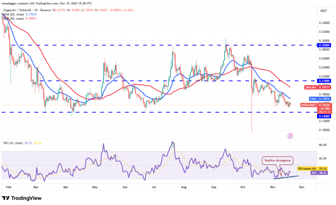 Phe gấu sẽ thử kéo giá Dogecoin về 0,14 USD, nơi phe bò dự kiến sẽ xuất hiện. Phân kỳ dương trên chỉ báo RSI cho thấy áp lực bán đang giảm bớt và khả năng xuất hiện nhịp hồi kỹ thuật.