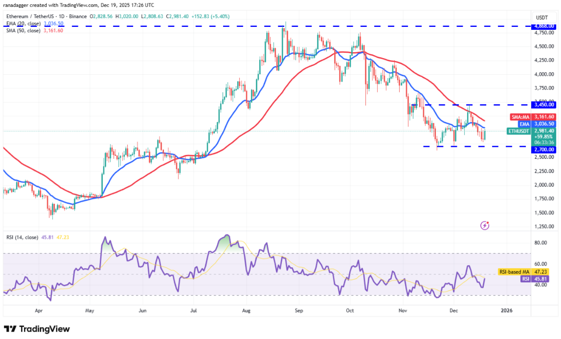 Ether (ETH) đang cố gắng phục hồi từ vùng hỗ trợ quanh 2.700 USD, cho thấy hoạt động mua vào khi giá giảm.