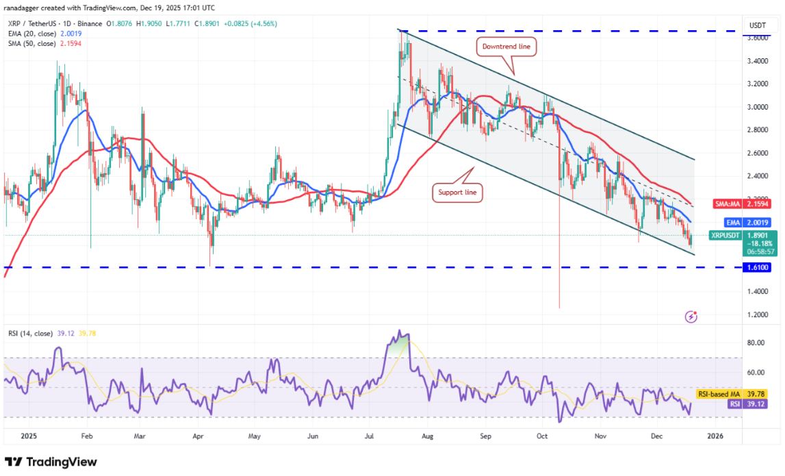 XRP đang cố gắng bật lên từ đường hỗ trợ của mô hình kênh giảm, cho thấy nhu cầu mua xuất hiện ở các mức giá thấp hơn.