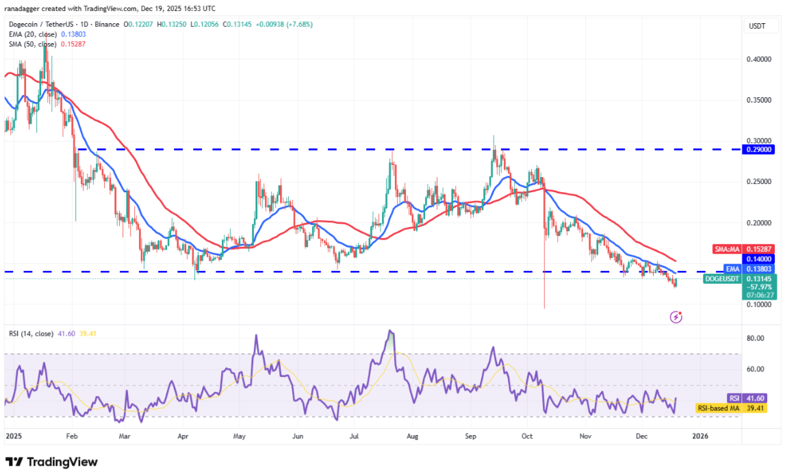 Giá Dogecoin (DOGE) vẫn nằm dưới mốc $0,14, nhưng phe bò đang nỗ lực khởi động một nhịp hồi phục kỹ thuật.