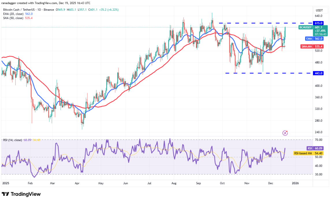 Người mua đã bảo vệ thành công đường SMA 50 ngày ($535) của Bitcoin Cash (BCH), cho thấy tâm lý thị trường vẫn tích cực.