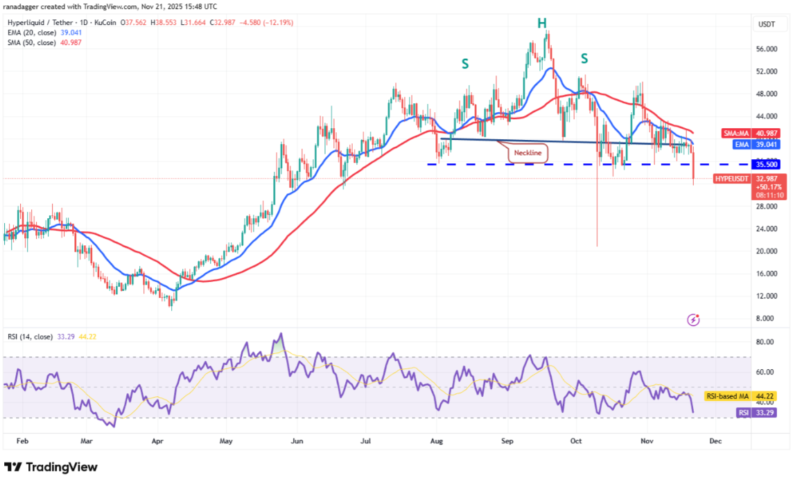 Hyperliquid (HYPE) đã cố gắng vượt lên trên đường EMA 20 ngày (39,04 USD) vào thứ Năm, nhưng phe gấu vẫn giữ vững vị thế.