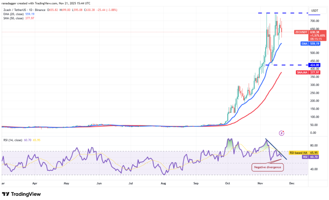 Zcash (ZEC) đã bật lên từ đường EMA 20 ngày (559 USD) vào thứ Ba, nhưng đà phục hồi đang gặp áp lực bán mạnh quanh 750 USD.