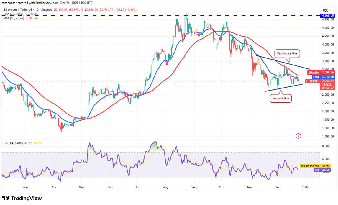 Ether (ETH) đã vượt lên trên đường EMA 20 ngày tại 3.010 USD vào thứ Hai, nhưng phe bò không thể vượt qua được lực cản từ SMA 50 ngày ở mức 3.088 USD.