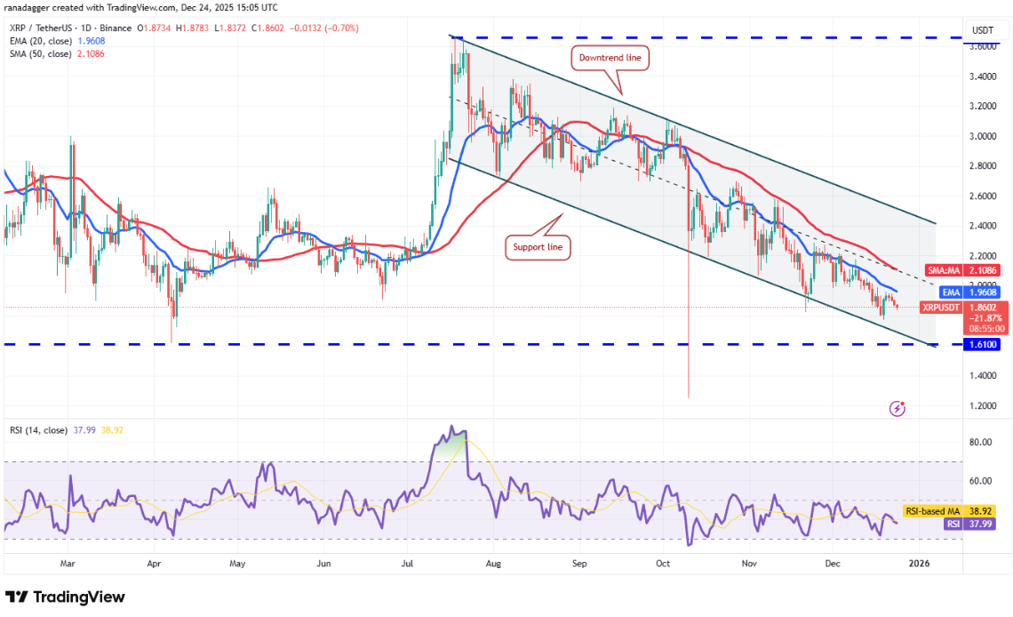 XRP tiếp tục giảm về đường hỗ trợ của mô hình kênh giảm, cho thấy phe gấu đang nắm quyền kiểm soát thị trường.