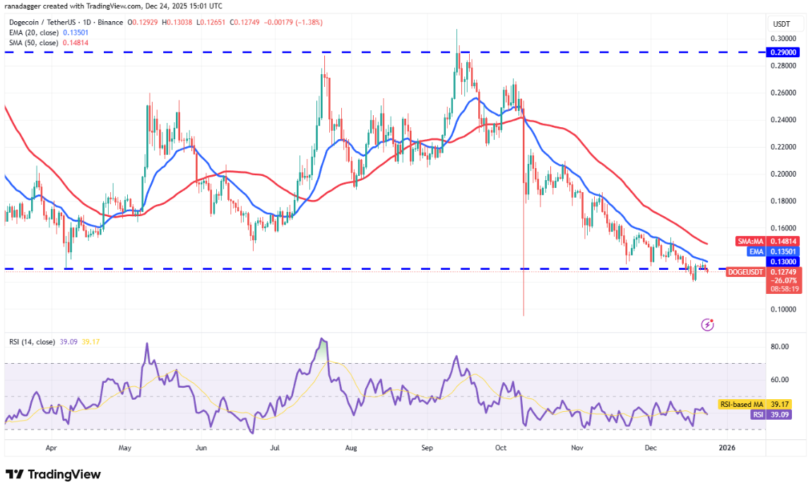 Dogecoin đã quay đầu giảm từ đường EMA 20 ngày tại 0,13 USD vào thứ Ba, cho thấy phe gấu vẫn đang kiểm soát xu hướng.