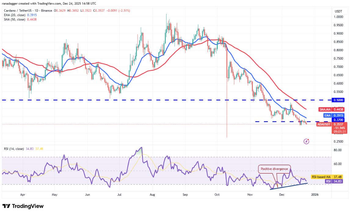 Giá Cardano (ADA) đã quay đầu giảm từ ngưỡng 0,37 USD, cho thấy phe gấu đang tìm cách biến khu vực này thành vùng kháng cự.