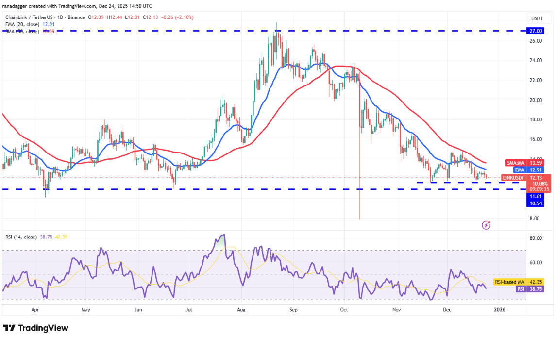 Giá Chainlink (LINK) đã quay đầu giảm từ đường EMA 20 ngày (12,91 USD) vào thứ Hai, cho thấy phe gấu tiếp tục bán ra khi giá hồi phục.