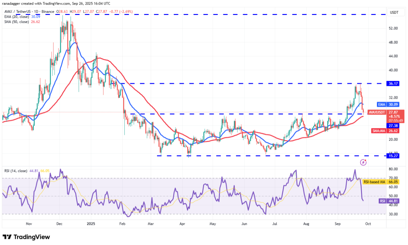 Avalanche (AVAX) đã giảm mạnh vào ngày thứ Năm và rơi xuống dưới đường EMA 20 ngày (30,09 USD), cho thấy phe gấu đang gia tăng áp lực bán.