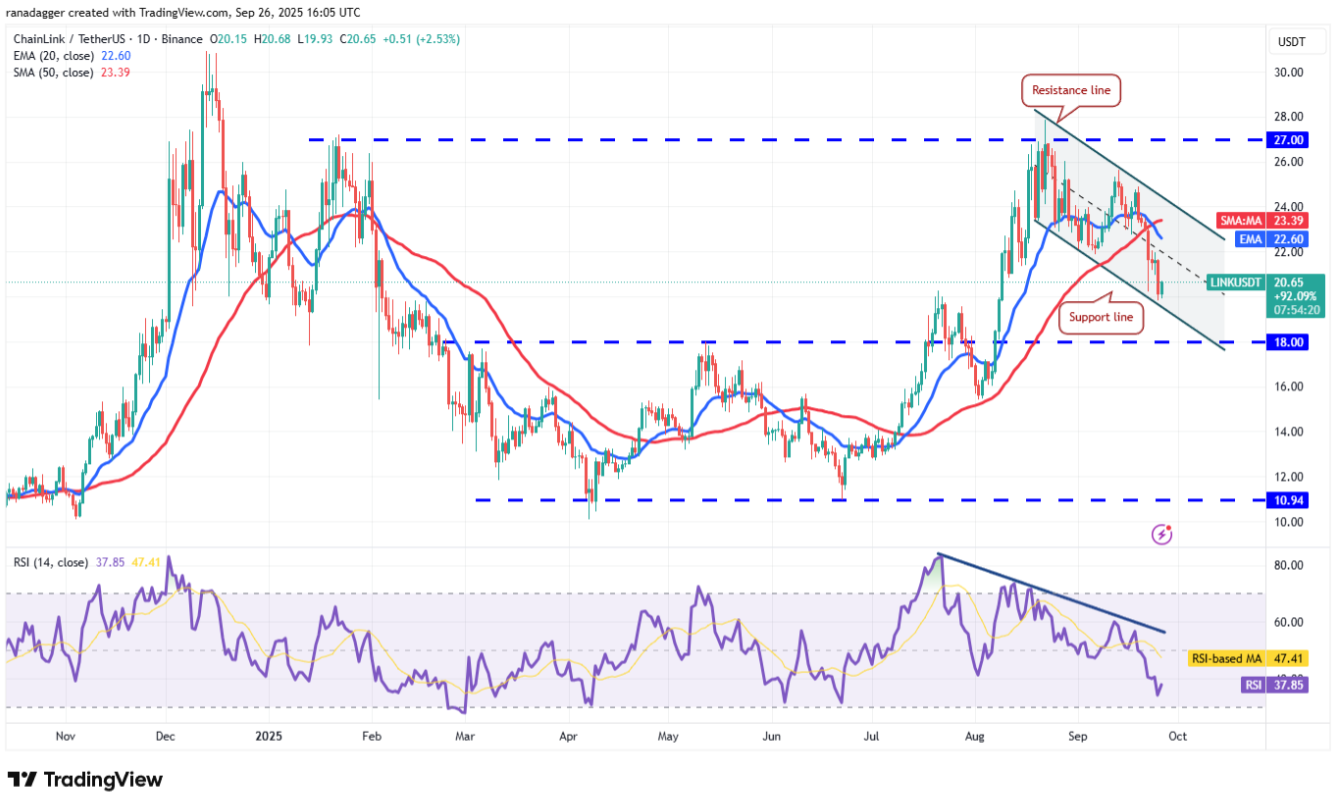 Chainlink (LINK) đã giảm xuống đường hỗ trợ của mô hình kênh giảm dần, nơi được kỳ vọng sẽ xuất hiện lực mua.