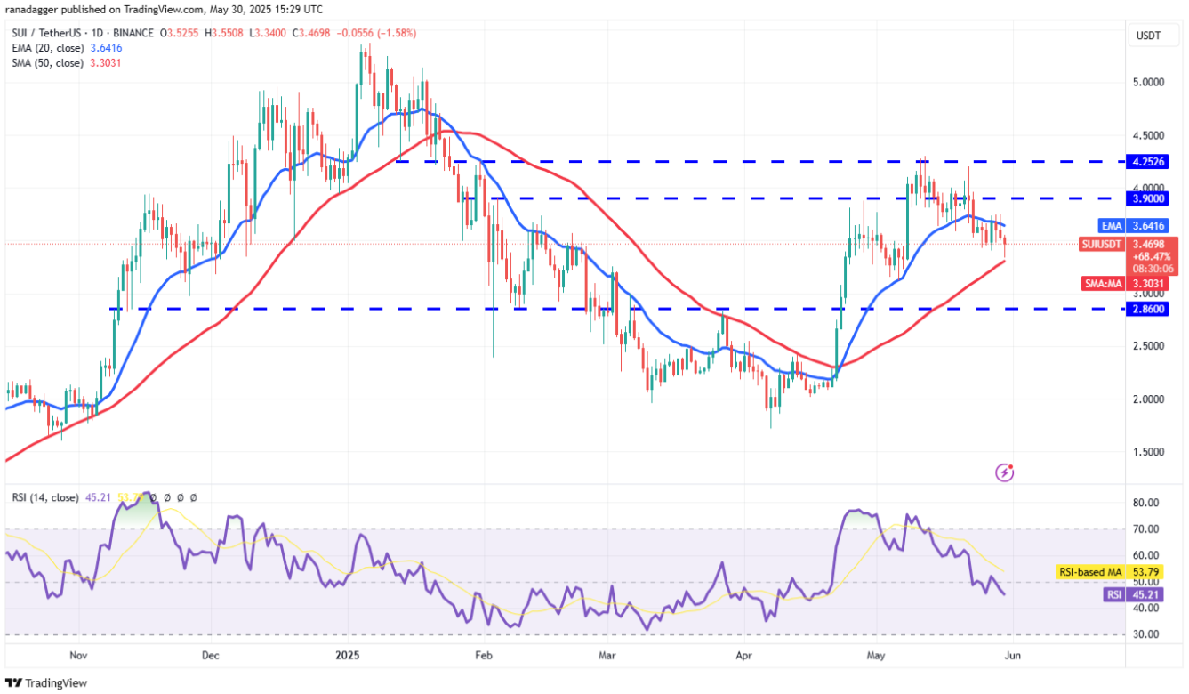 Sui (SUI) đã bật lên từ đường SMA 50 ngày ($3,30) vào ngày 30/5, cho thấy các mức giá thấp vẫn đang thu hút lực mua.