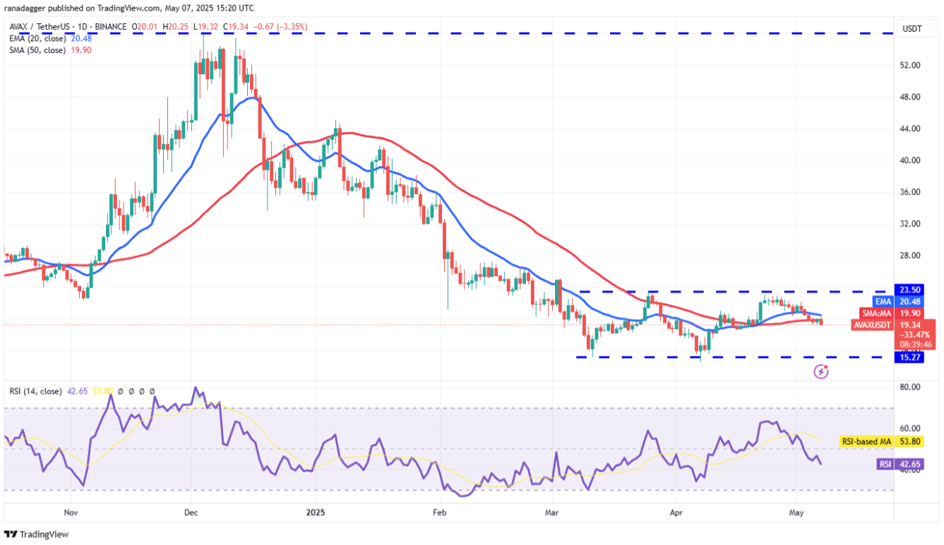 Avalanche (AVAX) đã trượt xuống dưới đường SMA 50 ngày ($19,90), cho thấy hành động giá đi ngang có thể còn tiếp diễn thêm vài ngày nữa.