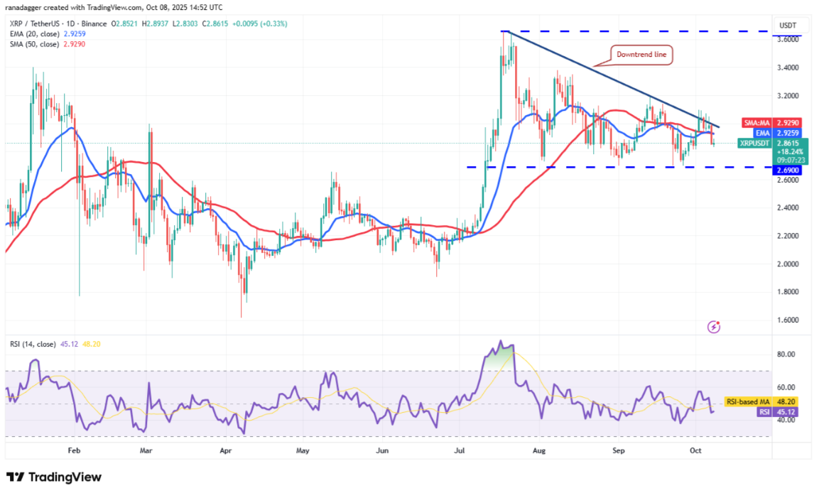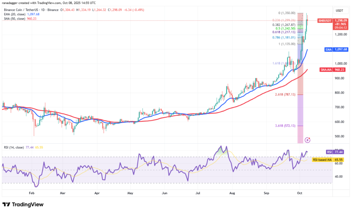 Để đảo ngược xu hướng, phe gấu cần kéo giá BNB xuống dưới mức Fibonacci thoái lui 61,8% tại 1.217 USD — điều có thể kích hoạt nhịp điều chỉnh sâu hơn về đường EMA 20 ngày (1.097 USD). Tuy nhiên, phe bò nhiều khả năng sẽ bảo vệ đường EMA 20 một cách quyết liệt, bởi việc thủng mốc này sẽ báo hiệu đà tăng suy yếu.