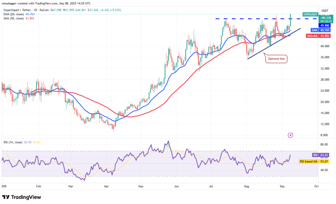 Hyperliquid (HYPE) tiếp tục đi lên, vượt qua vùng kháng cự 49,88 – 51,19 USD vào thứ Hai.