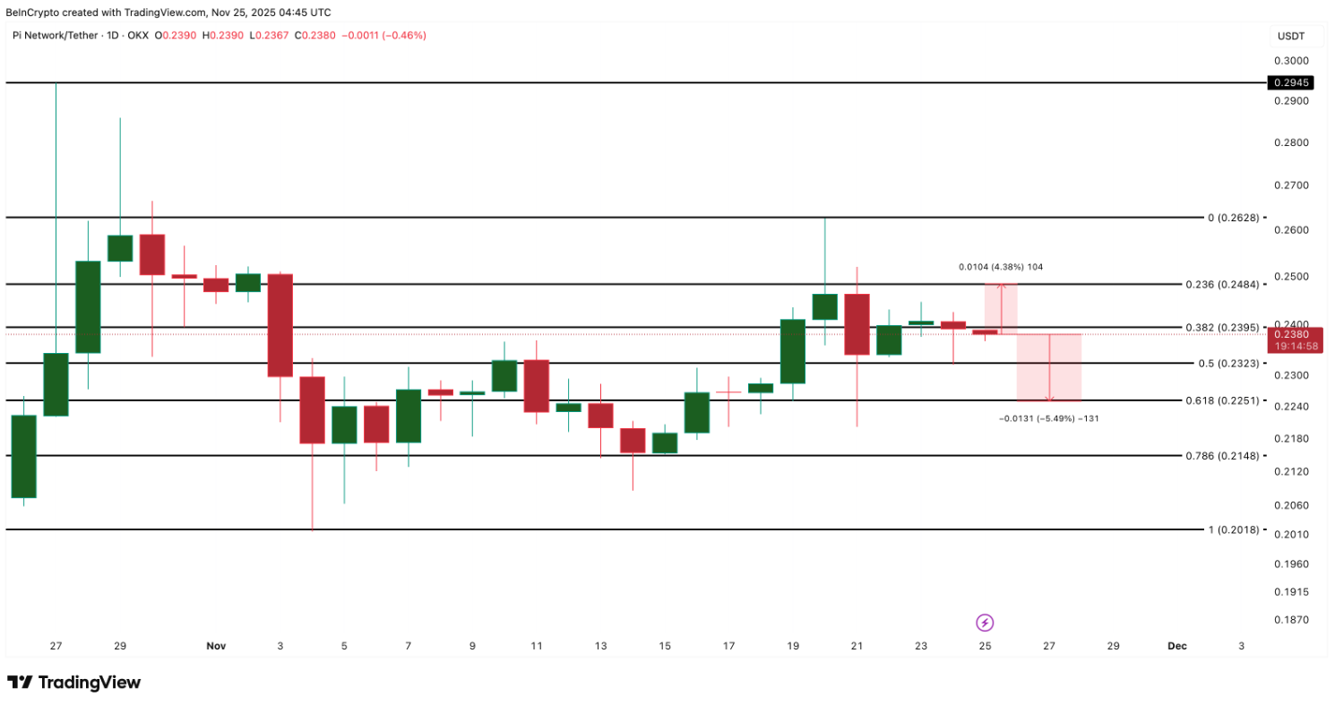 Một bứt phá rõ ràng trên $0,24 sẽ khẳng định sức mạnh thị trường, trong khi một sụt giảm dưới $0,22 sẽ xác nhận điểm yếu. Dù theo hướng nào, phạm vi giá của Pi Coin đang tiến gần tới ngưỡng phá vỡ quan trọng trong thời gian tới.