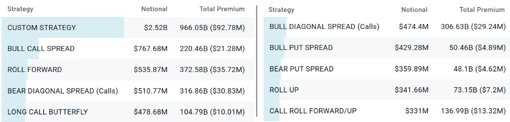Các trader đang rất lạc quan và điều này được phản ánh trong các chiến lược hàng đầu trên thị trường quyền chọn của Deribit, chẳng hạn như “bull call spread” và “bull diagonal spread”.