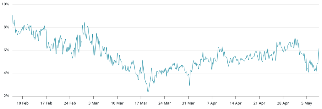 Phí premium của hợp đồng tương lai Bitcoin đã ở mức dưới 8% trong ba tháng qua, do đó, không có quá nhiều động cơ để tiến hành “giao dịch chênh lệch lãi suất”.