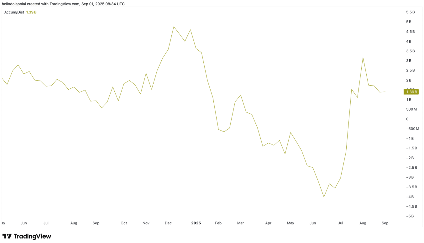 Chỉ số tích lũy – phân phối (Accumulation Distribution Indicator) càng củng cố nhận định này, khi cho thấy có tới 1,39 tỷ ENA được hấp thụ trên thị trường. Kết hợp với Smart Money, nhà đầu tư Spot và các ví mới, tất cả đều cho thấy niềm tin mạnh mẽ rằng ENA vẫn là một cơ hội mua đầy hứa hẹn.