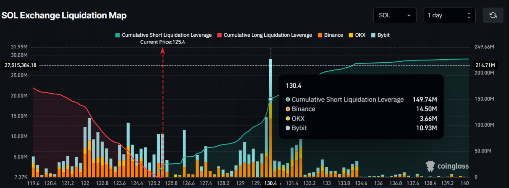 Theo dữ liệu mới nhất, tại thời điểm viết bài, mức 122,2 USD đóng vai trò hỗ trợ mạnh, trong khi 130,4 USD là ngưỡng kháng cự đáng chú ý. Ở hai mốc này, các trader đã thiết lập các vị thế đòn bẩy đáng kể, với 114,12 triệu USD cho các lệnh mua và 149,74 triệu USD cho các lệnh bán.