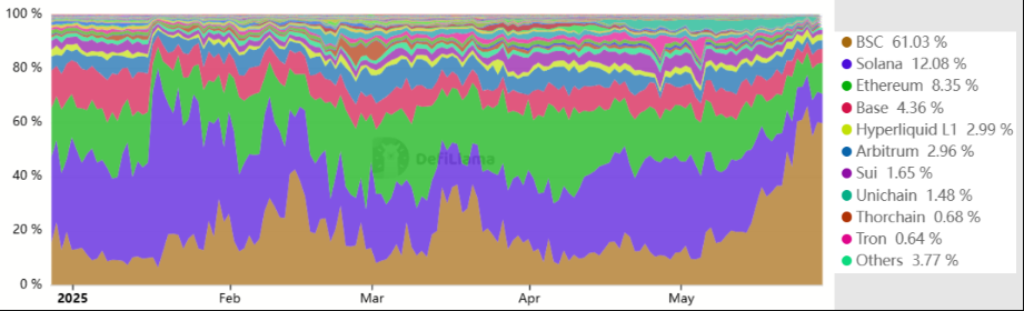 Sự tương phản này thể hiện rõ trong dữ liệu phí: Trong hơn 30 ngày, Solana đã tạo ra 48,7 triệu USD phí, so với 36,9 triệu USD của Ethereum, mặc dù Ethereum có cơ sở tiền gửi lớn hơn. Trong khi đó, BNB Chain, mặc dù có sự gia tăng gần đây, vẫn tụt hậu với chỉ 15,1 triệu USD phí.