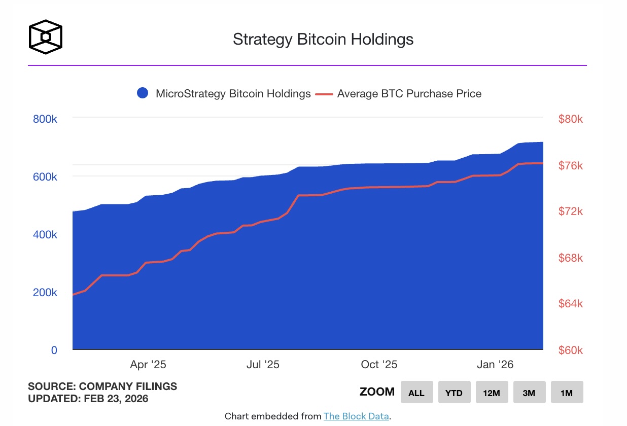 Công ty Strategy đã mua thêm 592 BTC với tổng giá trị khoảng 39,8 triệu USD, tương đương mức giá trung bình 67.286 USD/BTC trong giai đoạn từ ngày 17/2 đến 22/2, theo hồ sơ 8-K nộp lên Ủy ban Chứng khoán và Giao dịch Hoa Kỳ.