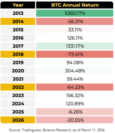 Báo cáo của Binance Research nhận định năm 2026 có thể là một giai đoạn nhiều thách thức đối với thị trường tài chính toàn cầu. Theo phân tích của nhóm nghiên cứu, trong những năm diễn ra bầu cử giữa nhiệm kỳ tại Hoa kỳ, môi trường chính trị thường trở nên bất ổn hơn, kéo theo biến động mạnh trên thị trường chứng khoán. Lịch sử cho thấy chỉ số S&P 500 thường ghi nhận mức giảm trung bình khoảng 16% từ đỉnh xuống đáy trong giai đoạn này, khiến đây trở thành năm yếu nhất trong chu kỳ tổng thống bốn năm.