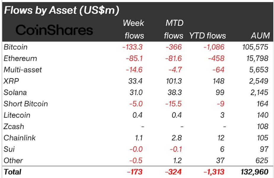 Theo báo cáo của CoinShares, XRP là token có hiệu suất tốt nhất từ đầu năm đến nay, thu hút khoảng 150 triệu USD vốn mới. Trái lại, Bitcoin và Ethereum ghi nhận tổng dòng vốn rút ròng khoảng 1,5 tỷ USD.