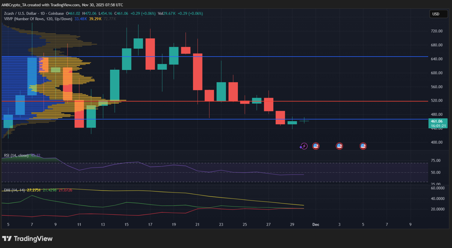 Tại thời điểm hiện tại, ZEC vẫn đang cố gắng giữ vững. Tuy nhiên, cho đến khi có sự phục hồi mạnh mẽ từ các vùng khối lượng cao hơn hoặc xuất hiện tín hiệu đảo chiều rõ ràng, xu hướng giảm vẫn là kịch bản chiếm ưu thế.
