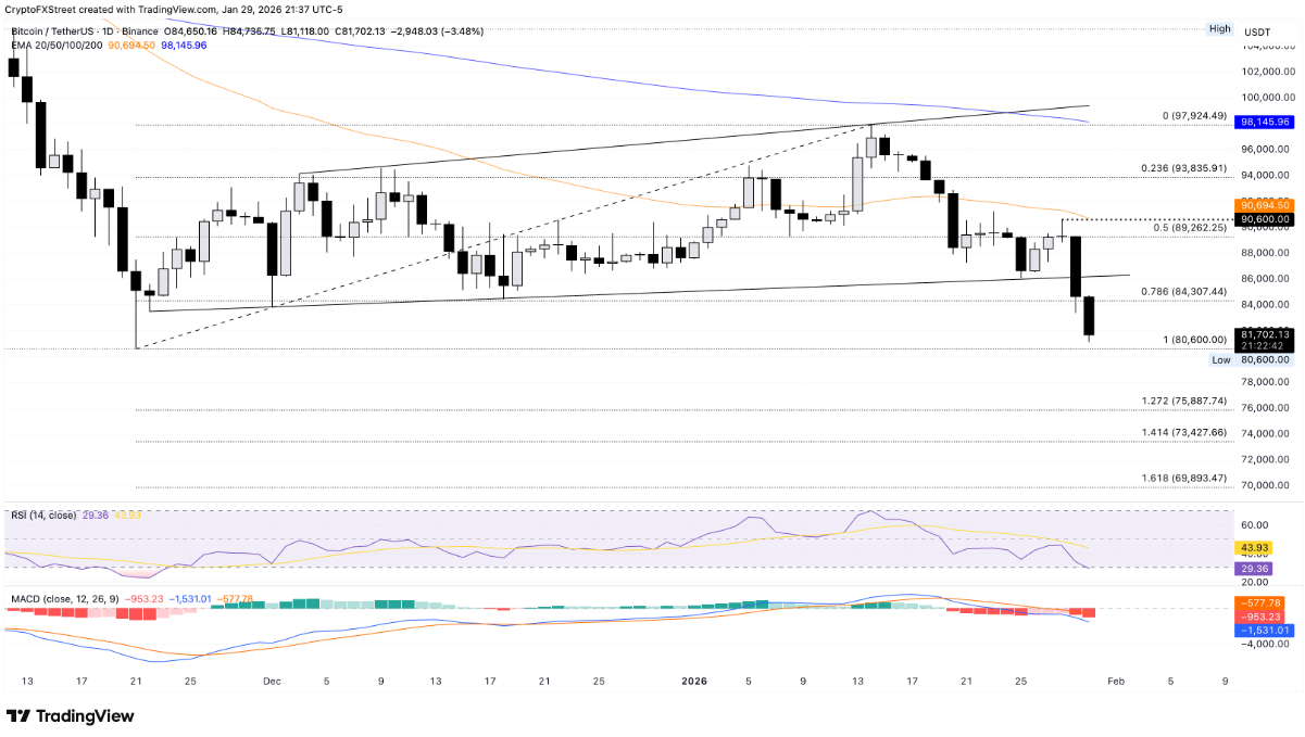 Ở kịch bản tích cực hơn, nếu lực cầu giúp giá bật lên từ 80.600 USD, Bitcoin có thể hướng tới việc kiểm tra lại ngưỡng Fibonacci thoái lui 78,6% tại 84.307 USD.