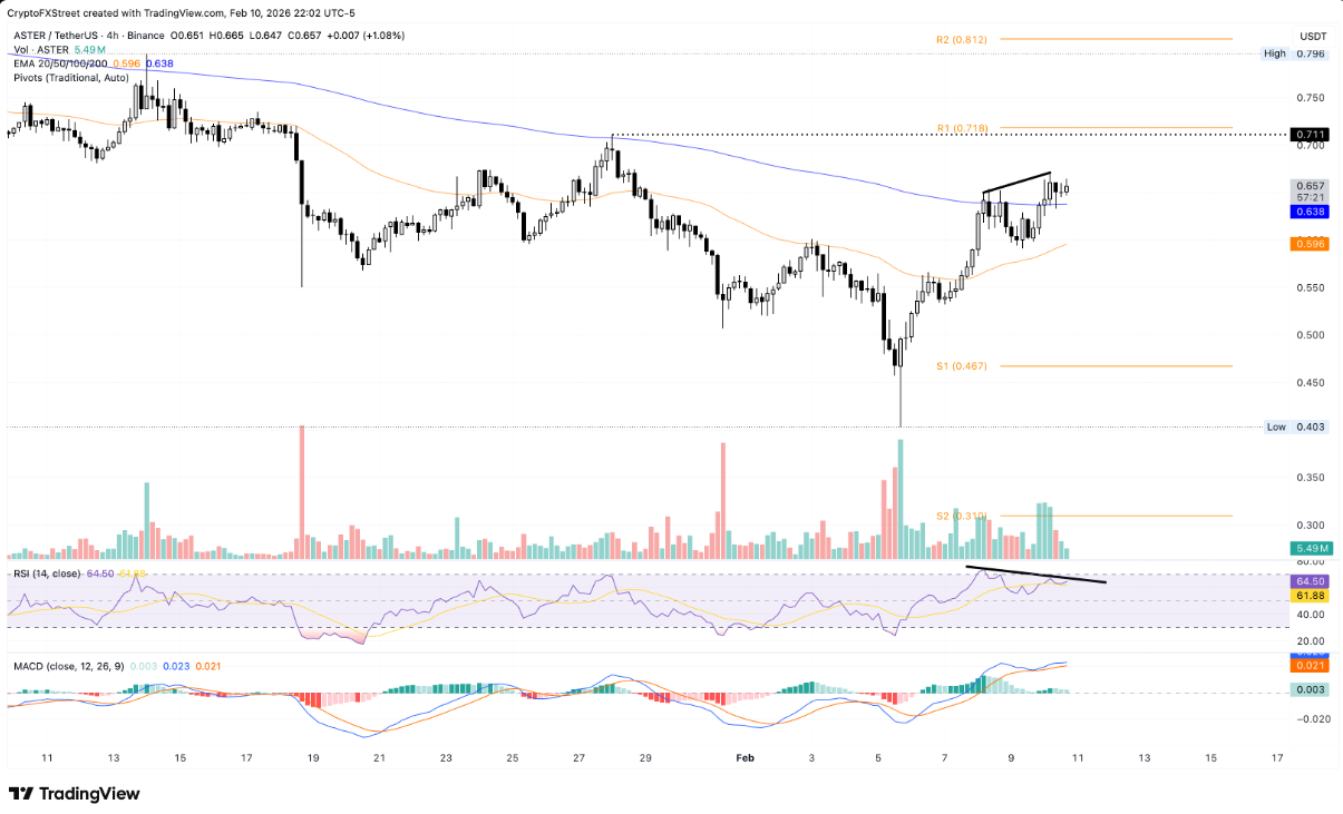 Aster đang duy trì vị thế vững chắc phía trên đường EMA 200 kỳ trên khung thời gian 4 giờ, quanh mốc 0,638 USD tại thời điểm viết bài vào ngày thứ Tư, sau khi bật tăng 8% trong phiên trước đó. Đà dốc lên của đường EMA 200 kỳ, cùng việc đường EMA 50 đang thu hẹp khoảng cách và tiến sát EMA 200, cho thấy xu hướng tăng vẫn chiếm ưu thế, đồng thời mở ra khả năng hình thành mô hình golden cross nếu lực mua tiếp tục được củng cố.