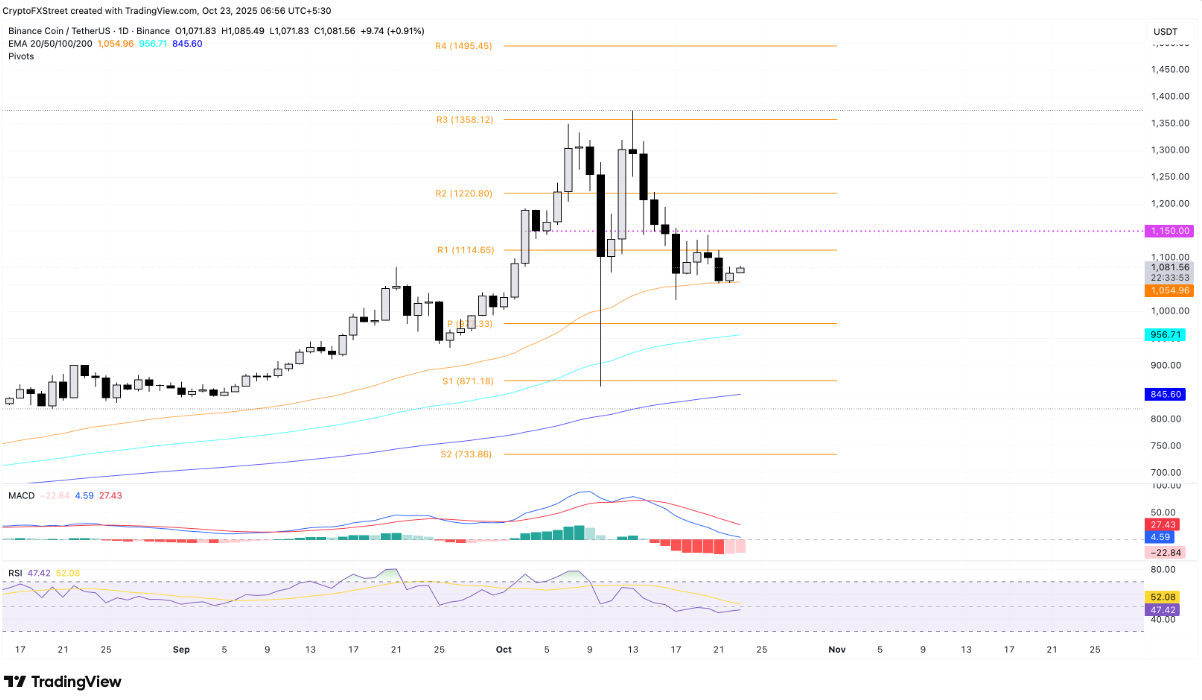 Nếu BNB đánh mất hỗ trợ tại đường EMA 50 ngày, tín hiệu hồi phục sẽ bị phủ nhận, kéo theo nguy cơ giá quay lại kiểm tra vùng hỗ trợ quan trọng tại Pivot trung tâm 977 USD.