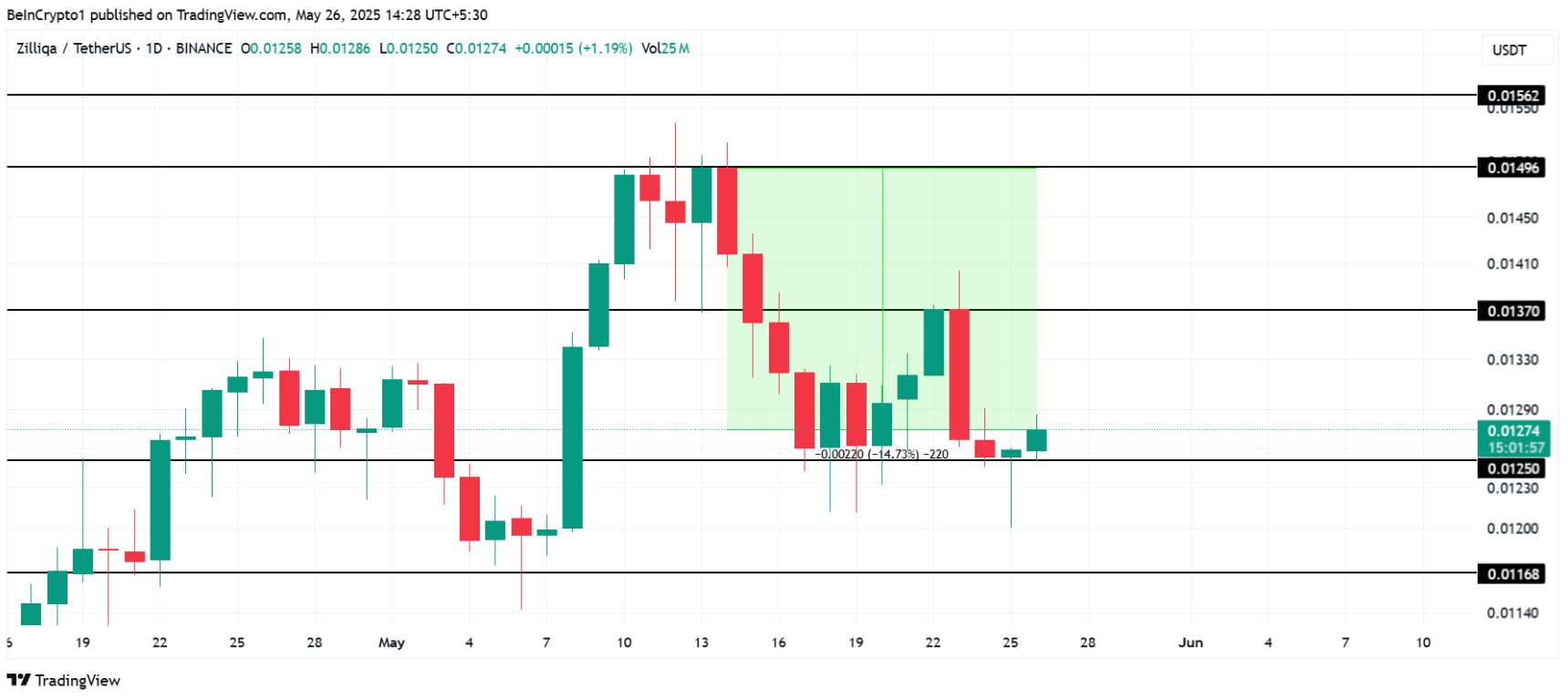 Trong hai tuần qua, giá ZIL đã sụt giảm 14,7%, từ mốc $0,0149 xuống còn $0,0127. Đà giảm này nhiều khả năng bắt nguồn từ sự chậm trễ trong việc ra mắt mạng chính Zilliqa 2.0 – một cột mốc quan trọng mà cộng đồng nhà đầu tư đang mong đợi. Tuy nhiên, bất kỳ tín hiệu tích cực nào liên quan đến quá trình nâng cấp này đều có thể đóng vai trò chất xúc tác, thổi bùng trở lại kỳ vọng tăng giá của token.