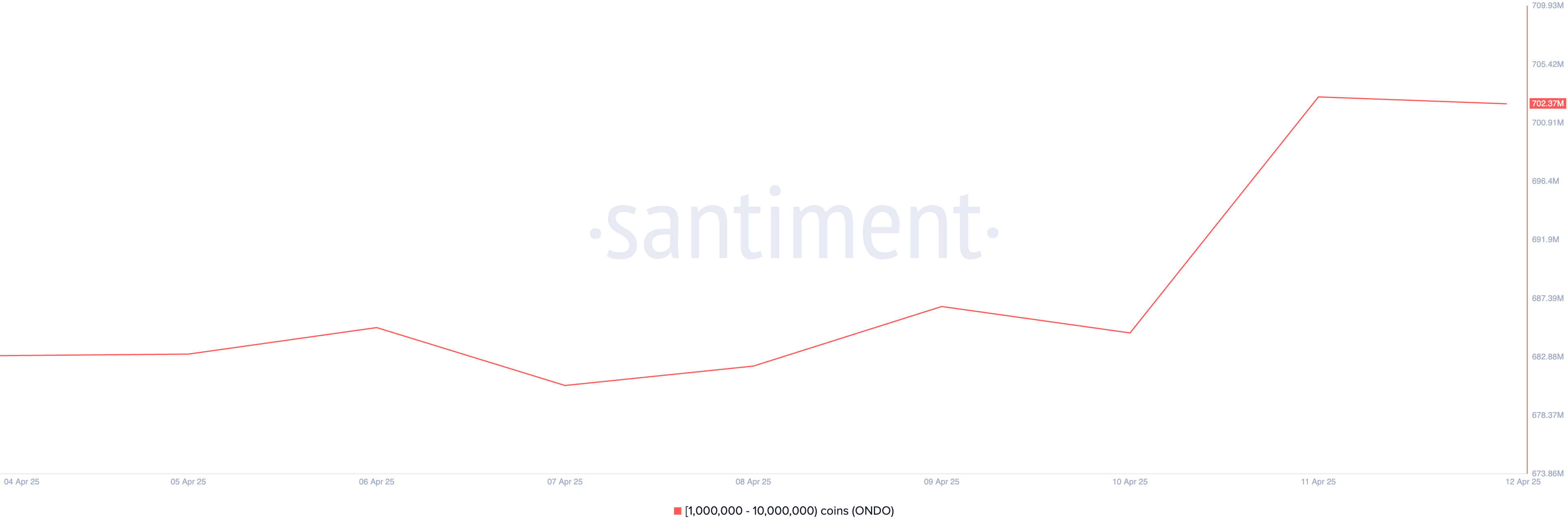 Tổng lượng ONDO mà nhóm này nắm giữ hiện đã lên tới 702,37 triệu coin.