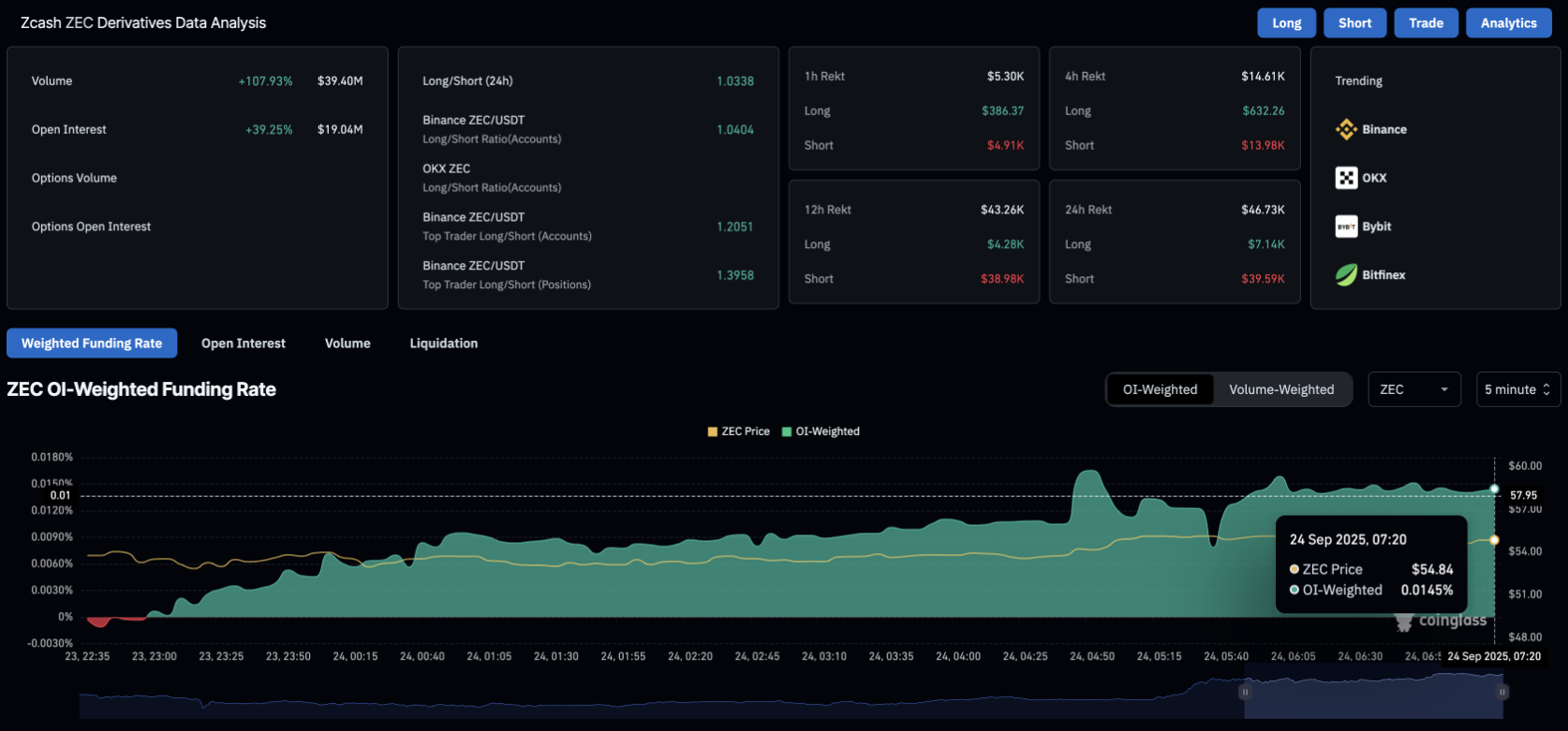 Zcash củng cố đà tăng nhờ sự bùng nổ của hợp đồng mở