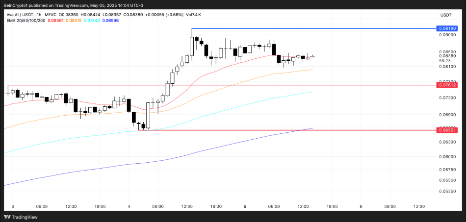 Nếu AVA lấy lại được đà tăng của tuần trước, giá có thể tăng cao hơn để kiểm tra mức kháng cự tại $0,0919.