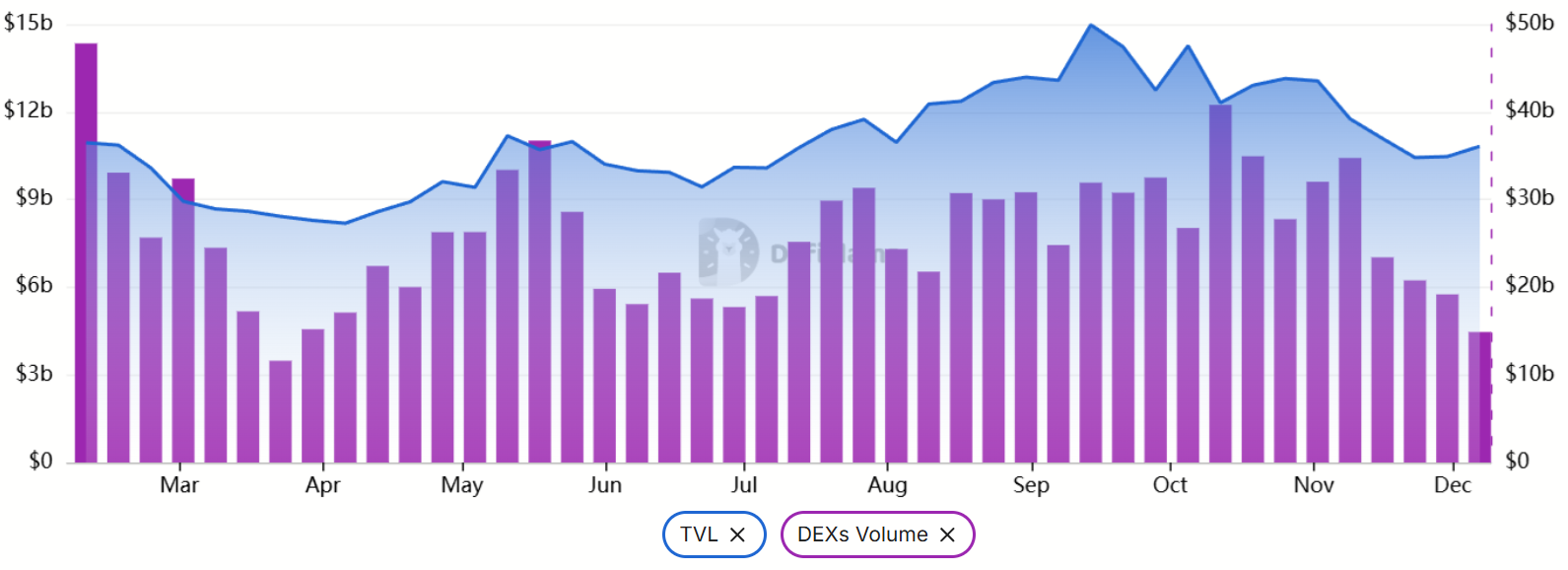 Tổng giá trị khóa (TVL) của Solana giảm từ 13,3 tỉ USD xuống 10,8 tỉ USD trong hai tháng, với nhiều dự án chủ chốt như Kamino, Jupiter, Jito và Drift ghi nhận lượng gửi giảm trên 20%. Khối lượng giao dịch trên các DEX Solana cũng suy yếu mạnh.