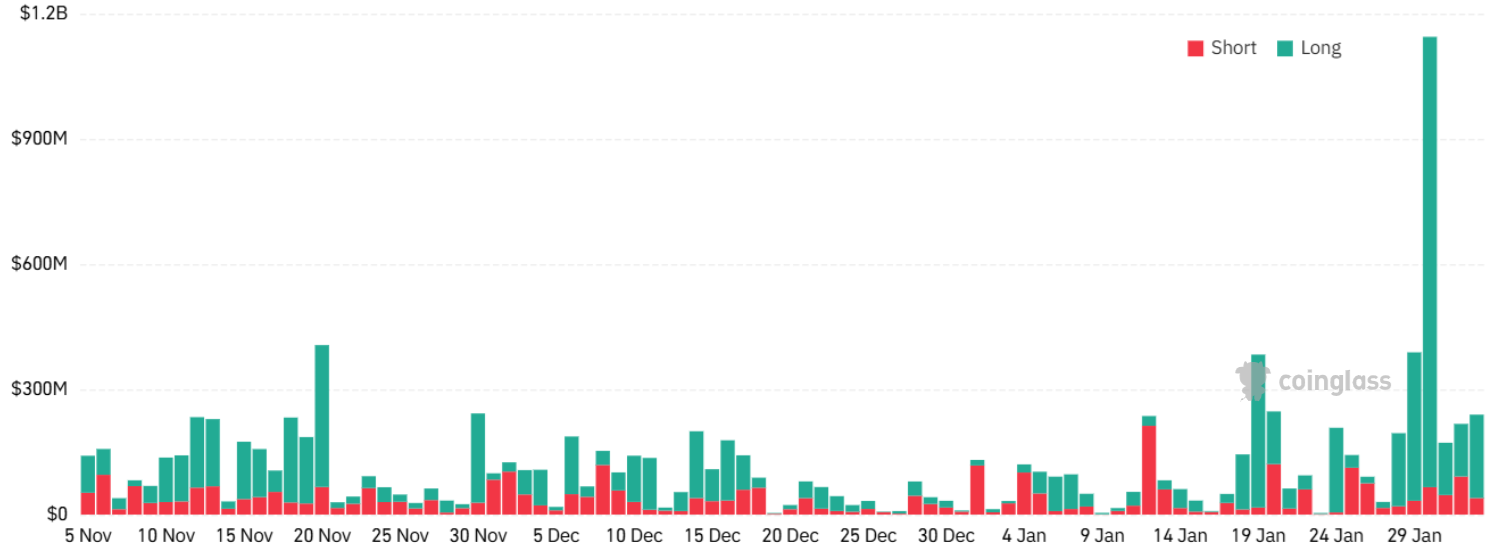 Nhà đầu tư Ether trở nên bất an khi các đồng lớn khác chỉ điều chỉnh nhẹ hơn trong tháng qua: Bitcoin giảm 17%, BNB giảm 14% và Tron giảm 4%. Đà lao dốc về 2.110 USD trong tuần đã kích hoạt hơn 2 tỉ USD thanh lý các vị thế futures ETH đòn bẩy theo chiều tăng, làm dấy lên lo ngại về khả năng giảm sâu hơn khi tâm lý thị trường chuyển sang tiêu cực.