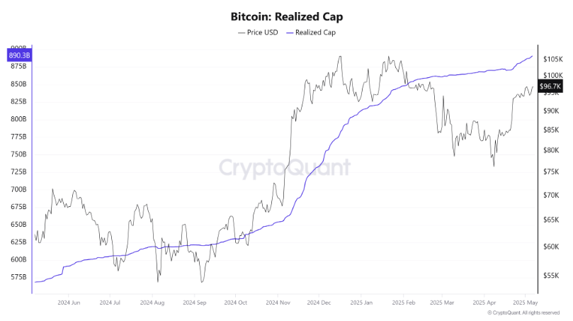 Cùng lúc đó, vốn hóa hợp lý của BTC, số liệu đo lường giá trị USD của tất cả BTC theo giá biến động cuối cùng của chúng, đã tăng vọt lên mức kỷ lục mới là 890 tỷ USD vào ngày 7 tháng 5. Sự gia tăng này cũng đánh dấu tuần thứ ba liên tiếp tăng trưởng phá kỷ lục của số liệu này.